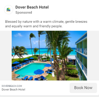 Sarah sees a hotel's sponsored Instagram post showcasing a beautiful pool and pristine beach adorned with palm trees.Â