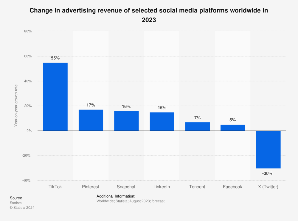 Advertising revenue generated by TikTok was expected to increase by 55% in 2024.Â