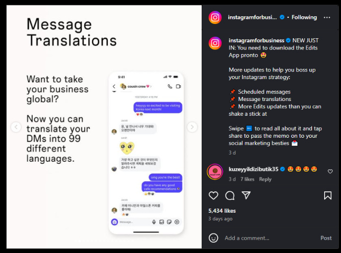 Instagram for Business: Updates to Edits App, scheduled messages, and message translations | Instagram