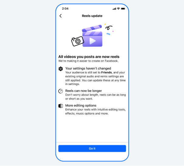 In June 2025, Meta announced it would now treat all videos as Reels. These changes are being rolled out globally in stages. Meta is merging video and Reel formats under a single publishing flow. On Facebook, the Video Tab is being renamed to the Reels Tab, and all videosâregardless of lengthâwill follow a consistent display format. Existing videos will remain visible on profiles and Pages, but all new uploads will automatically publish as Reels.