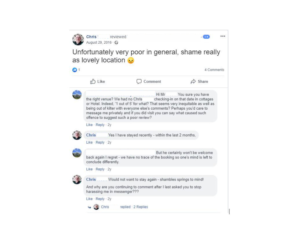 Apologise that the guest did not have a positive experience. Invite them to get in touch directly (include a contact email) so you can resolve the issue privately and improve their experience.