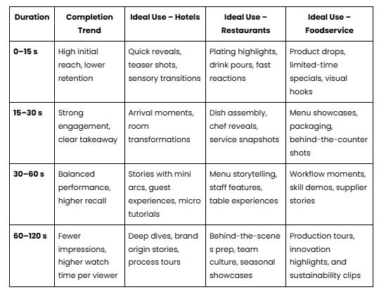The best TikTok length depends on what you want the viewer to feel and remember. In hospitality, every duration serves a role, from quick sensory moments that spark curiosity to longer clips that build connection and brand story.